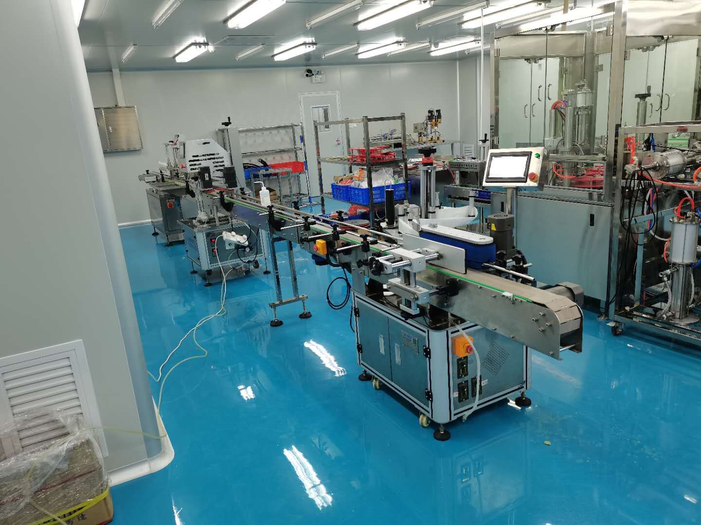灌装机,旋盖机,贴标机,已完成生产车间安装调试