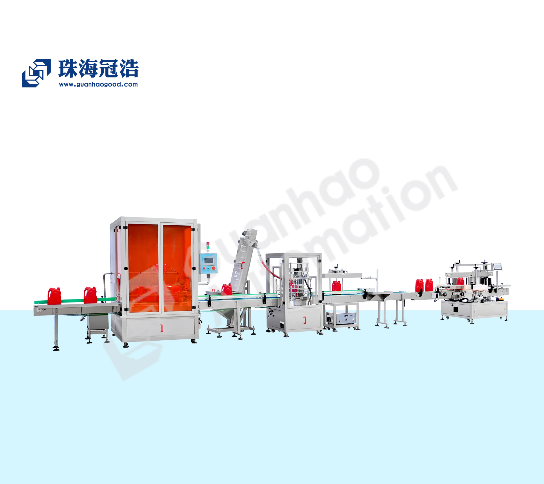 全自动灌装生产线主要针对粘稠度液体,自动旋盖、自动封口、自动贴标机、此自动灌装生产线主要用于机油、食用油及其它医药、食品、化妆品行业等液体灌装生产。该线具有自动化程度高、灌装精度高、生产效率大、操作简单、节省人员、使用寿命长等特点。