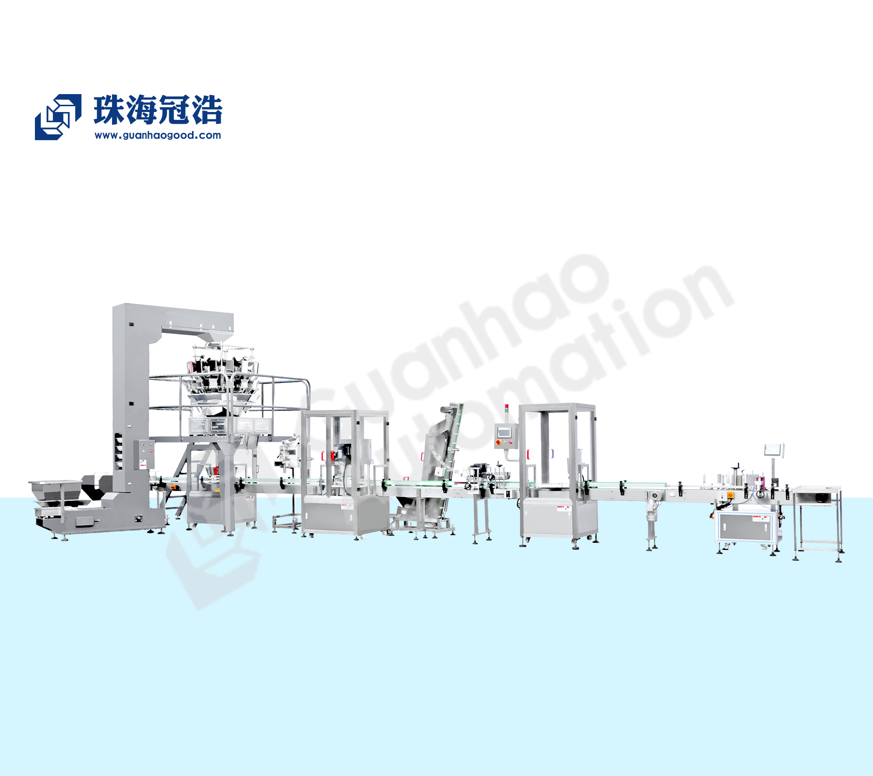 珠海冠浩机械全自动称重直线式灌装生产线,主要适用医药工厂,食品工厂,化妆品工厂等行业。