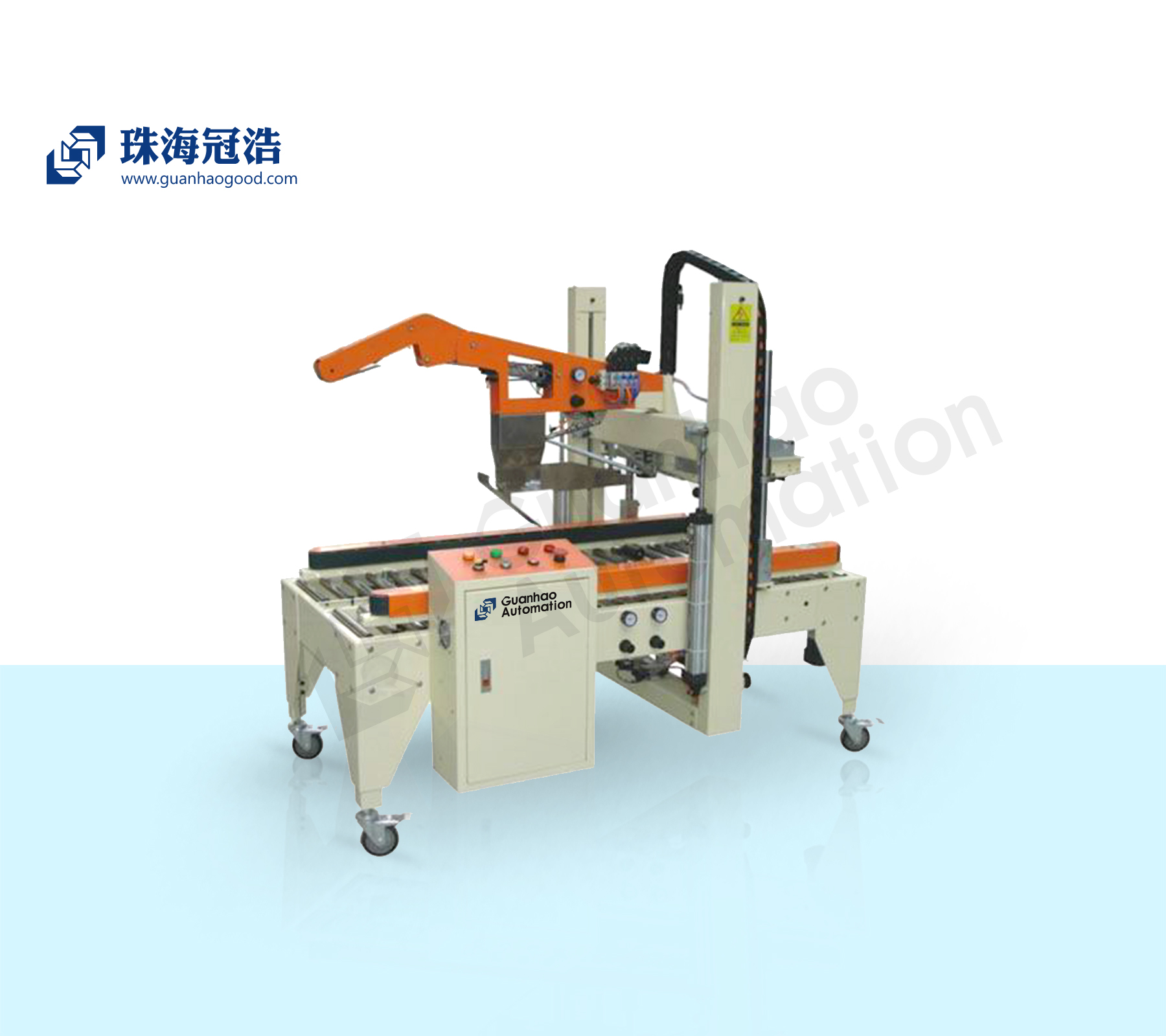 本机是带有折盖功能的半自动封箱机系列之产品,单机操作,经济而又高效,是较为理想的封箱设备,其功能特性简列如下: