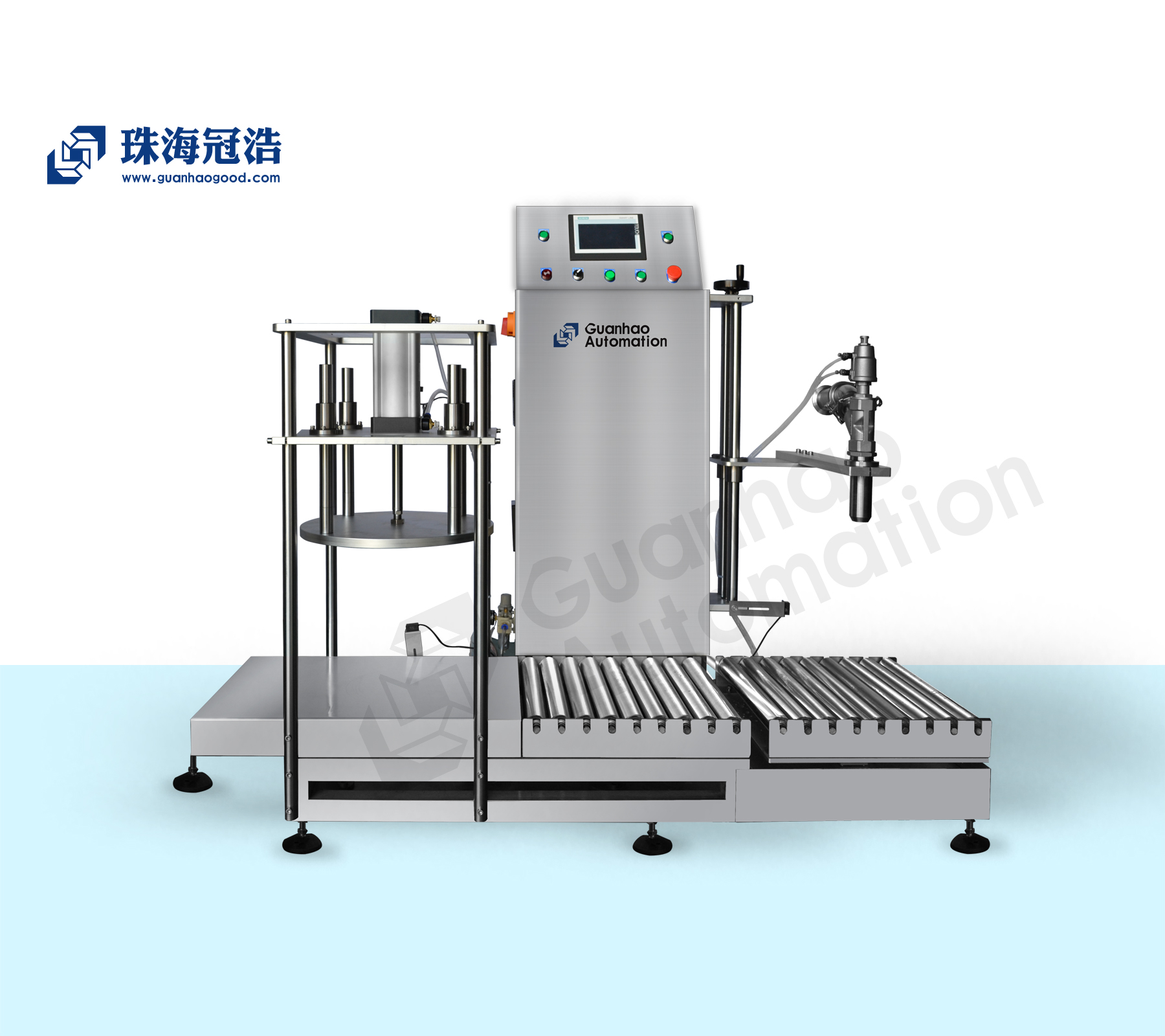 称重式灌装机采用人机界面,电脑自动化灌装,操作简单方便!整体采用无动力滚筒输送,省时省力,傻瓜式操作!速度快!精度高!本机适用于:液体肥料、添加剂、化工液体、润滑油、防冻液、食用油、乳油等一系列液体灌装 。