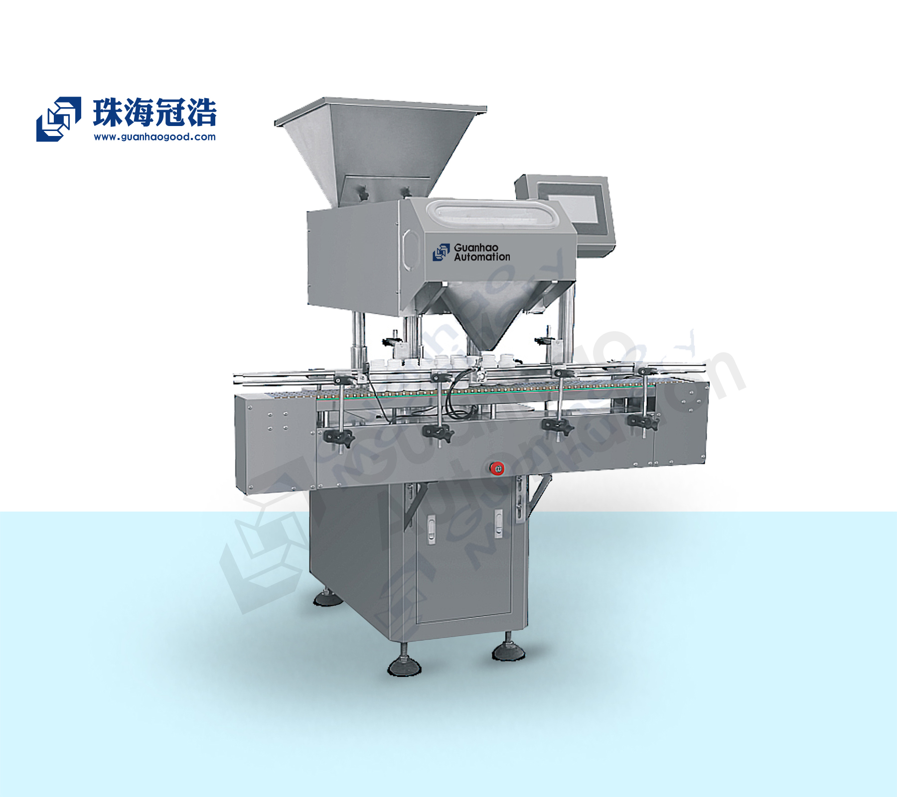 (1)兼容性强,可以对片剂(包括异型片)、胶囊、软胶囊(透明、不透明)、丸剂等固体制剂或固体颗粒进行计数装瓶;