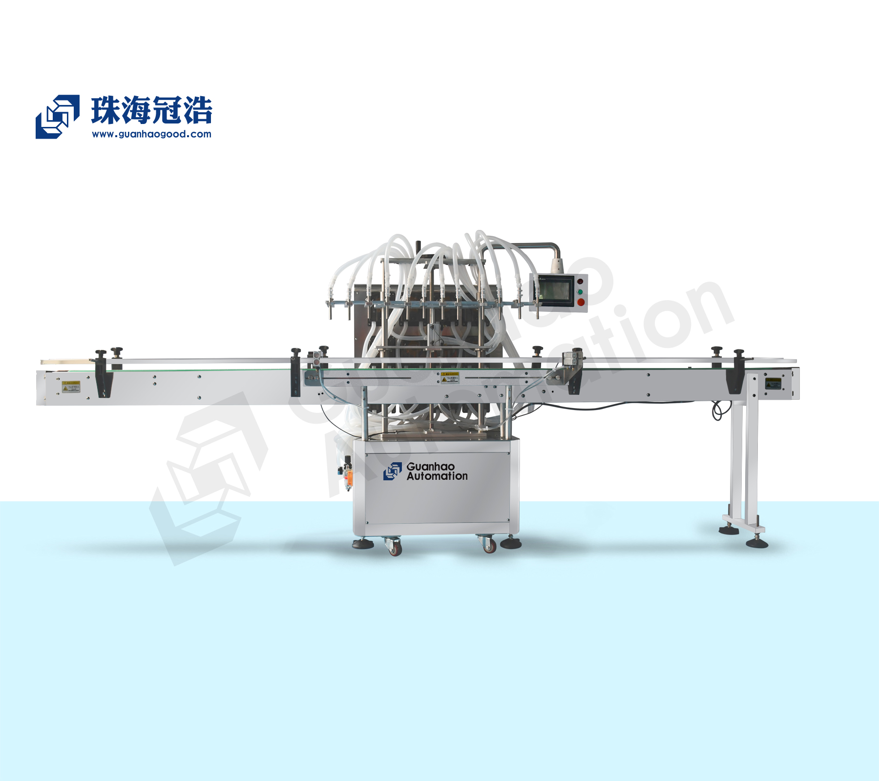 4. 灌装机采用直线式进瓶、定点定位、定量泵式灌装,可适用于多种瓶形的灌装,且更换瓶形时调整方便,兼容性强(以客户产品瓶类为准);