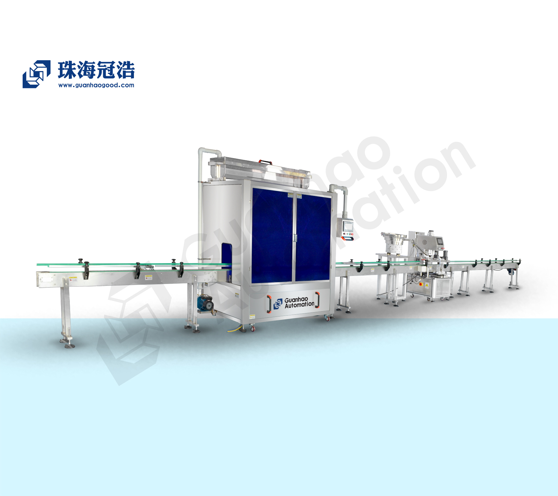 3. 各机均采用PLC与人机界面操作控制,确保无盖无瓶自动停机报警;生产数据均可在系统中设置、保存和调取;