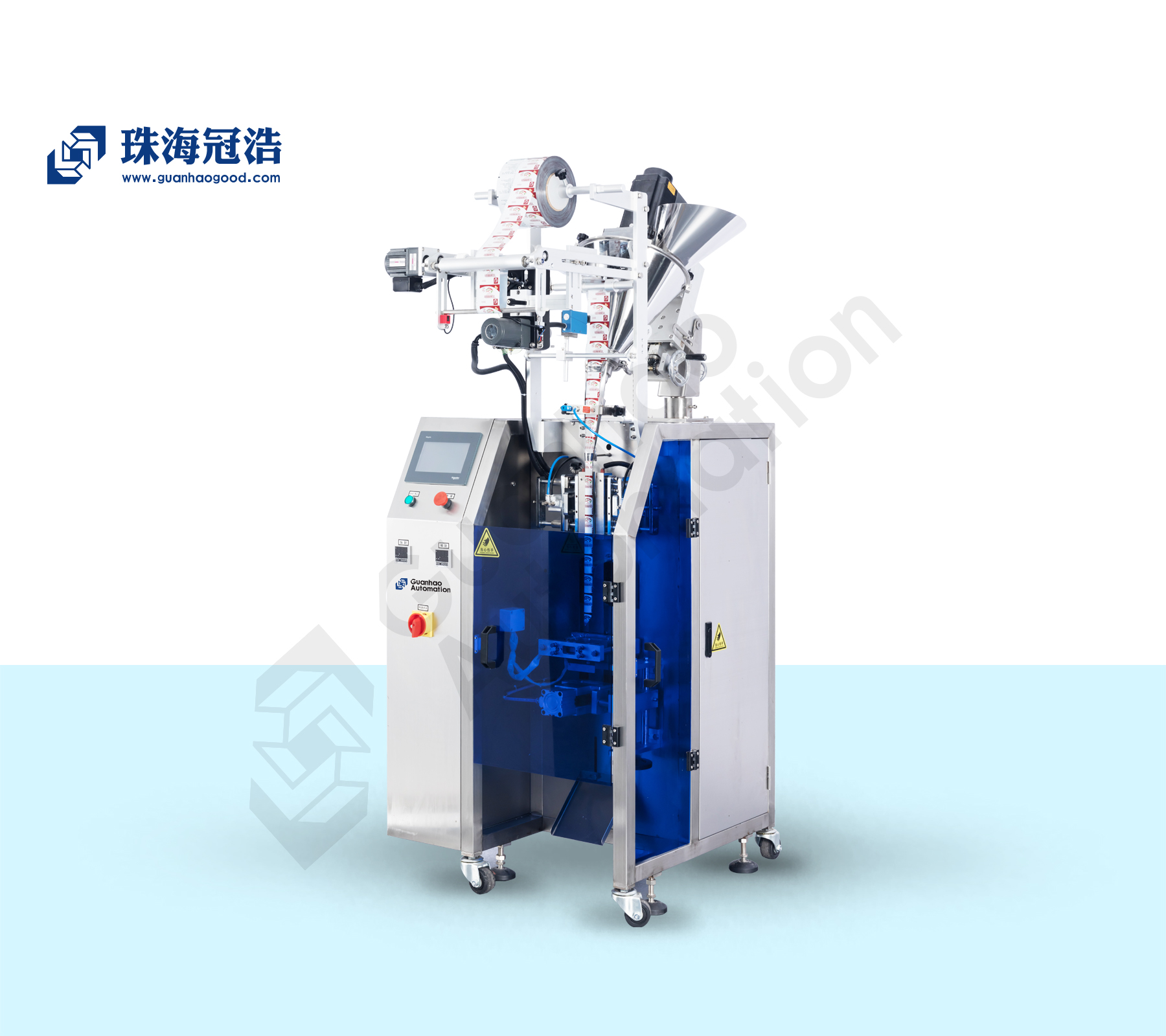 3.智能型温控仪控制。自动完成计量、制袋、充填、封合、打印批号、切断及记数等全部工作。采用背封枕形袋封口形式。